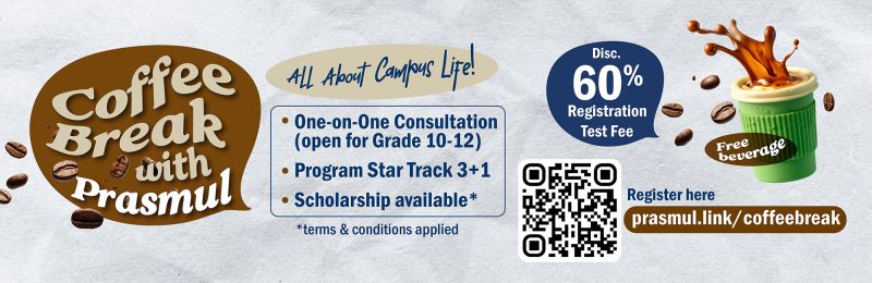 Yuk, datang dan ngobrol bareng soal yang lagi trending di dalam dunia bisnis dan teknologi, karier, sekaligus life hack soal kehidupan kampus, hingga pendaftaran mahasiswa baru di A Coffee Break with Prasmul Undergraduate Program.