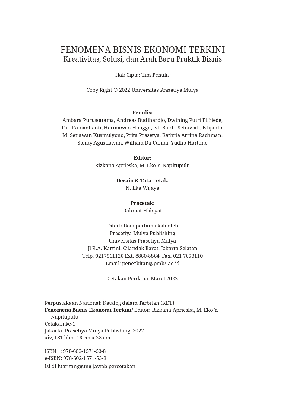 Buku yang dikurasi sebagai kumpulan refleksi atas berbagai peristiwa yang terjadi selama satu tahun terakhir ini menyajikan 13 artikel dari dunia bisnis ekonomi.