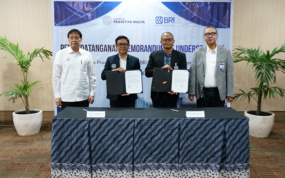 Menjawab tantangan tersebut, PT Bank Rakyat Indonesia Tbk (BRI) menandatangani Nota Kesepahaman dengan Universitas Prasetiya Mulya untuk memperkuat kerja sama di bidang pengembangan SDM, pendidikan, riset, dan pemberdayaan masyarakat.