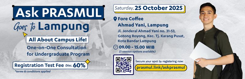 ASK Prasmul merupakan sarana bagi calon Prasmulyan sepertimu, untuk menanyakan berbagai hal seputar kurikulum yang updated, pembelajaran berbasis praktik, fasilitas yang menunjang, hingga informasi pendaftaran mahasiswa.